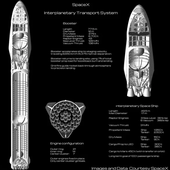 ITS คือวิสัยทัศน์เริ่มต้นของ SpaceX สำหรับระบบขนส่งข้ามดาวเคราะห์ ซึ่งถูกนำเสนอครั้งแรกในปี พ.ศ.2559 ในงาน International Astronautical Congress (IAC) ที่ประเทศเม็กซิโก แนวคิดนี้แสดงถึงความมุ่งมั่นอย่างแท้จริงในการสร้างระบบขนส่งที่ใหญ่ที่สุดเท่าที่เคยมีมา โดยมีรายละเอียดที่น่าทึ่งดังนี้: