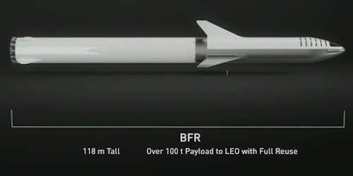 SpaceX ตัดสินใจปรับลดขนาดเพื่อความเป็นไปได้ในการผลิตมากขึ้น BFR ในเวอร์ชันนี้มีความสูงรวม 118 เมตร และถูกกำหนดให้เป็นจรวดนำส่งที่ทรงพลัง สามารถบรรทุกสัมภาระได้ มากกว่า 100 ตัน สู่ขอบวงโคจรโลก (LEO) ด้วยคุณสมบัติสำคัญคือ การนำกลับมาใช้ใหม่ได้อย่างสมบูรณ์ (Full Reuse) ซึ่งเป็นเป้าหมายหลักในการลดต้นทุนการเดินทางข้ามอวกาศ