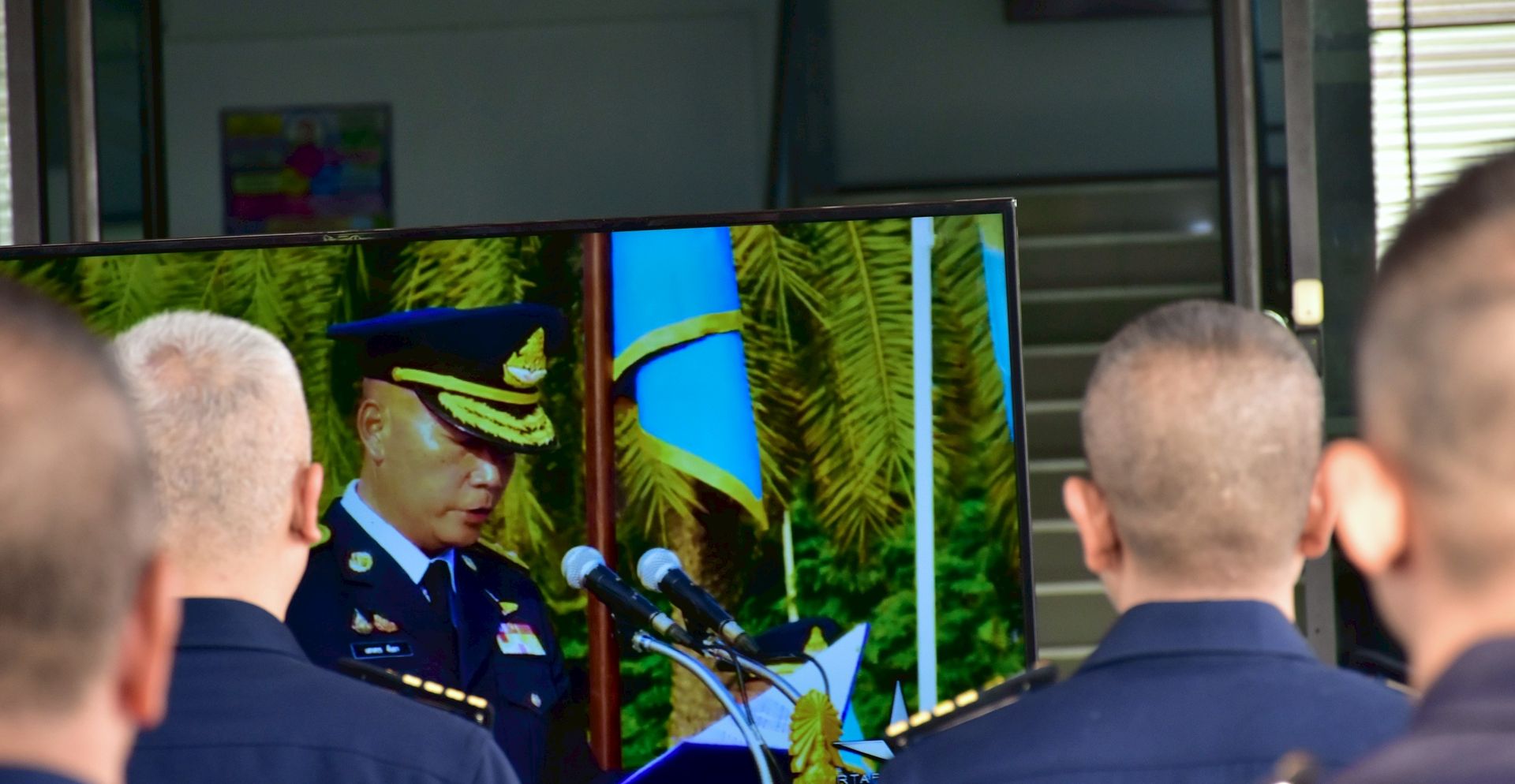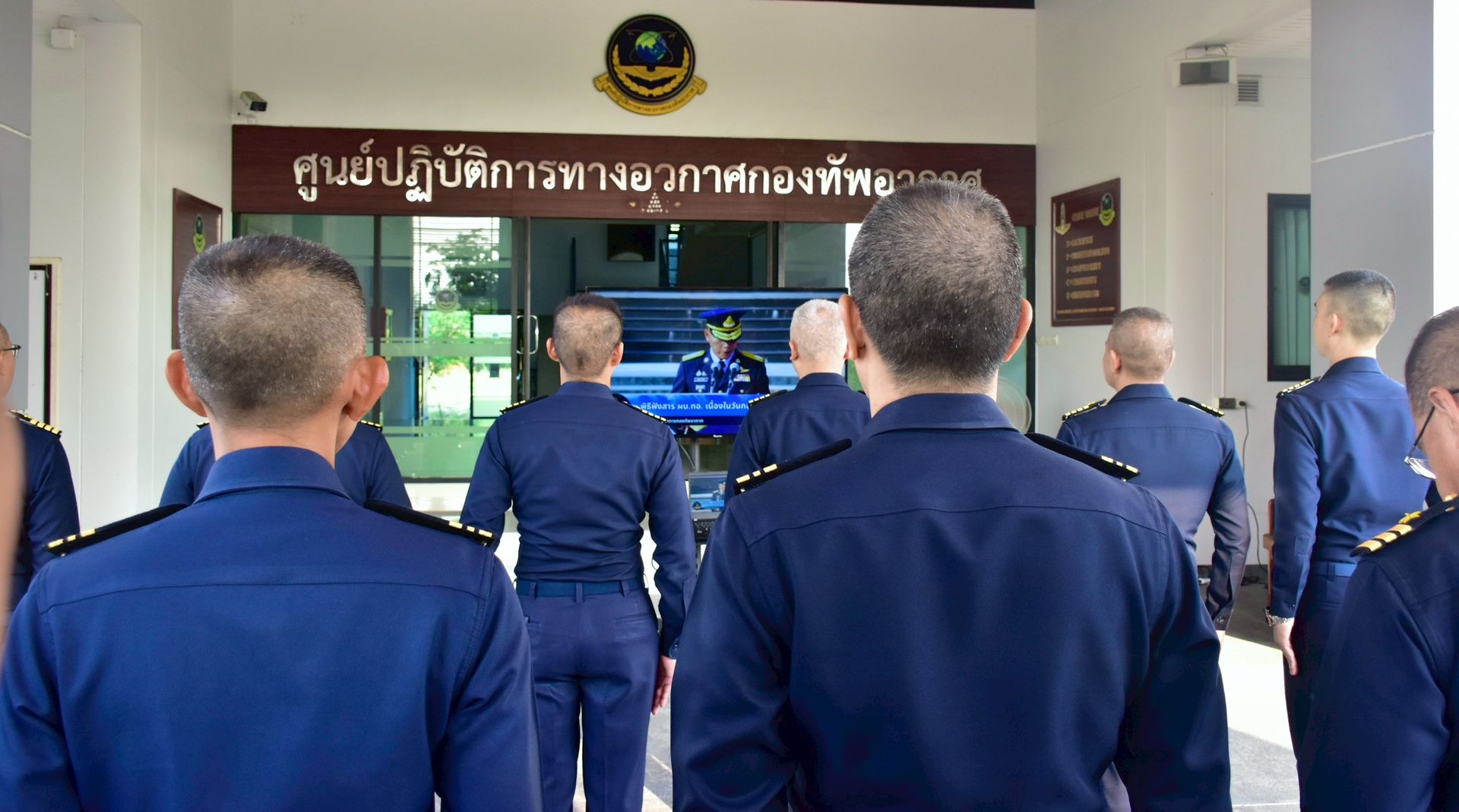 นาวาอากาศเอก อุทัย เนื่องฤทธิ์ เสนาธิการศูนย์ปฏิบัติการทางอวกาศกองทัพอากาศนำกำลังพล ร่วมฟังสารของผู้บัญชาการทหารอากาศ เนื่องในวันกองทัพอากาศ ผ่านระบบส่งสัญญาณโทรทัศน์ผ่านดาวเทียม (Cable TV )โดยมี ข้าราชการ ลูกจ้างและพนักงานราชการ เข้าร่วมพิธีฟังสารฯ เมื่อ ๙ เม.ย.๖๙ ณ บริเวณโถงด้านหน้าอาคารศูนย์ปฏิบัติการทางอวกาศกองทัพอากาศ